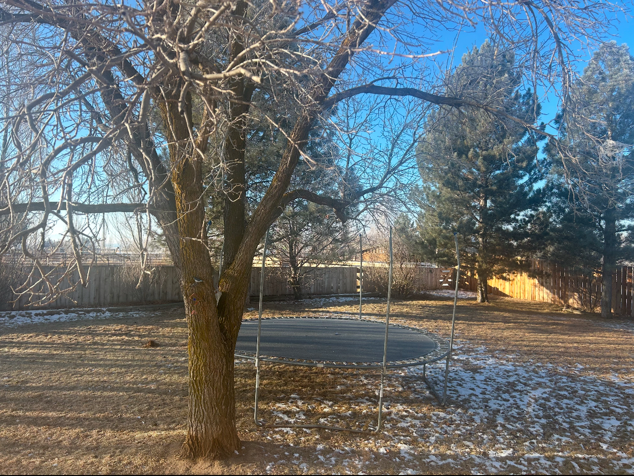 I increased the brilliance as well as highlights to distinguish the white snow spots in the lawn. I lightened the contrast to develop the tree limbs from the fence making them more defined.