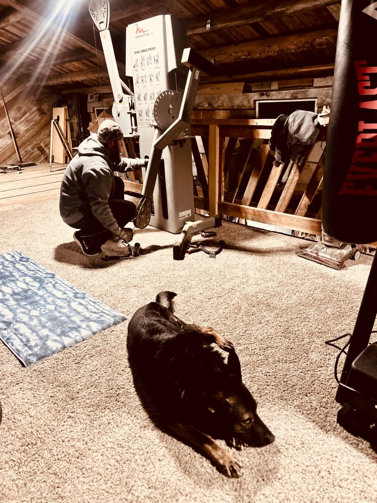 Added the filter vivid warm. Adjusted brilliant, saturation, black point, contrast, shadows and blurred the outside to help focus on the dog and the man.
